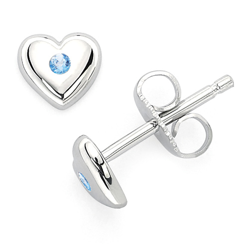 These sterling silver blue topaz heart earrings for kids are from the Little Diva collection. They feature round blue topaz accent stones. Item measures 6mm by 6mm. Weight: 0.63 g.
