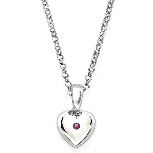 These sterling silver created alexandrite heart pendant for kids is from the Little Diva collection. It features a round created alexandrite accent stone. Item measures 7mm by 7mm. Weight: 0.71 g. Pendant comes on a 16 inch, 1mm wide rolo chain with lobster clasp.