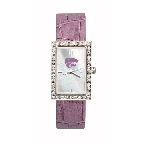 Kansas State University starlette watch has a mother of pearl dial and pastel purple leather strap in crocodile embossed pattern. Adorned with 40 cubic zirconias, the case is powered by a Citizen® quartz movement. Packaged in designer LA LA LA box. Two year limited warranty. Team the Starlette Watch up with the I Heart Pendant and Earrings for a fabulous team trio!