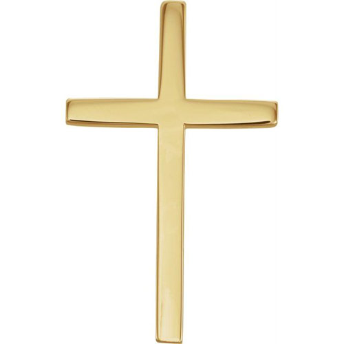 Polished 14kt yellow gold smooth cross with hidden bail. Dimensions: 25.75mm x 15.75mm. Weight: 2.31 grams. Please note: weight is approximate, actual weight may vary. Chain not included.