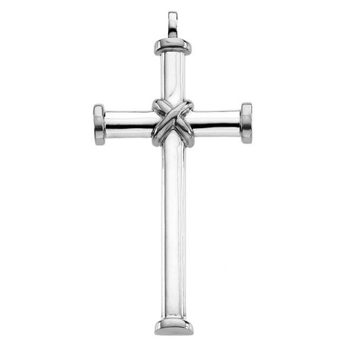 This large men's wrapped cross pendant is made of polished 14k white gold. Dimensions: 49x26.5mm. Fits up to a 3.5mm wide chain. Approximate weight: 7.81 grams.