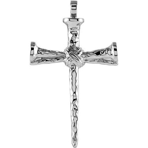 Wrapped nail cross pendant is made of polished 14k white gold. It has a 14k yellow gold center. Dimensions: 50.5mm x 34.5mm. Weight: 11.68 grams. Please note: weight is approximate, actual weight may vary. Chain not included.