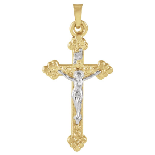 Hollow. Polished 14kt yellow and white gold. Weight: 1.05 DWT (1.63 grams) Please note: weight is approximate, actual weight may vary. Chain not included.