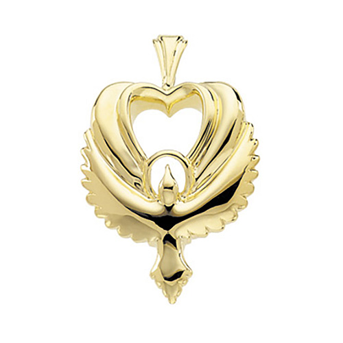 Holy spirit dove pendant is made of polished 14k yellow gold. Weight: 3.00 DWT (4.66 grams) Please note: weight is approximate, actual weight may vary. Chain not included.