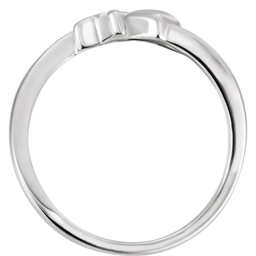 Polished 14kt white gold purity ring features heart and cross in center. Each ring comes with a gift box, card and pouch. Ring top width: 8.8mm. Weighs 2.99 grams. Please note: weight is approximate, actual weight may vary.