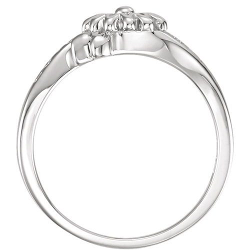 Love waits purity ring is made of solid 14k white gold. Ring features flower in center. Each ring comes with a gift box, card and pouch. Size 6 weighs approximately 4.29 grams. Please note: weight is approximate, actual weight may vary. Made in USA.