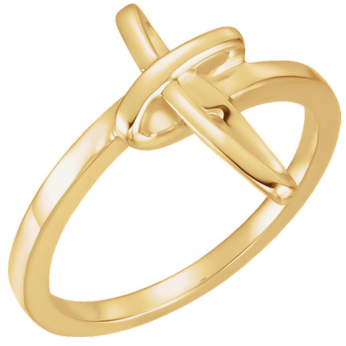 Chastity ring with abstract cross is made of polished 14kt yellow gold. Ring features cross in center. 3.53 grams. Please note: weight is approximate, actual weight may vary.