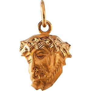 Hollow face of Jesus pendant is made of polished 14kt yellow gold. Flat back. Item size: 13mm x 10mm. Weighs 0.48 grams. Please note: weight is approximate, actual weight may vary. Chain not included.