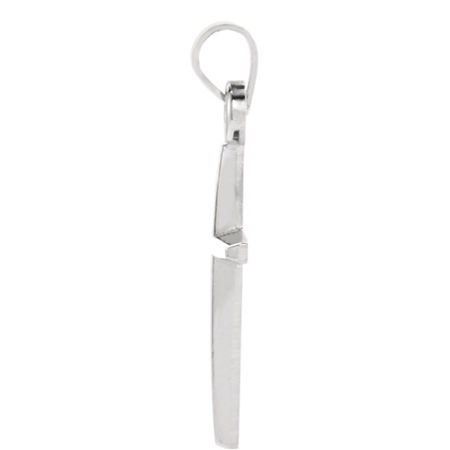 Die struck, polished 14kt white gold. Tapered design. Dimensions: 21x15mm. This item is slightly smaller than a nickel. Weight: 0.82 DWT (1.28 grams) Please note: weight is approximate, actual weight may vary.Chain not included. Bail size: 2.3mm x 2.75mm. We recommend a chain no wider than 2.0mm.