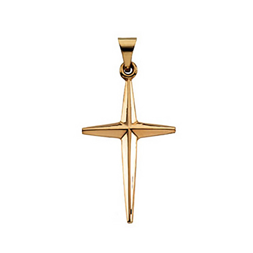 Tapered and beveled passion cross pendant is made of solid 14k yellow gold. This item is slightly taller than a quarter. Bail dimensions: 3.3mm x 3.75mm; we recommend a chain no wider than 3.0mm for this cross. Weight: 1.63 grams. Please note: weight is approximate, actual weight may vary. Chain not included.