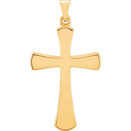 Smooth crusader cross is made of polished 14kt yellow gold. Dimensions: 21mm x 14.25mm. This item is slightly smaller than a nickel. Fits up to a 2mm wide chain. Weight: 2.10 grams. Please note: weight is approximate, actual weight may vary. Chain not included.