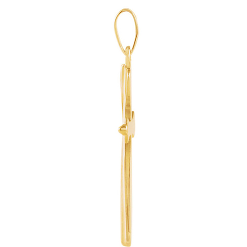 This passion cross pendant is made of polished 14kt yellow gold. Dimensions: 24mm x 16.5mm. Weight: 1.34 grams. Please note: weight is approximate, actual weight may vary. Chain not included.
