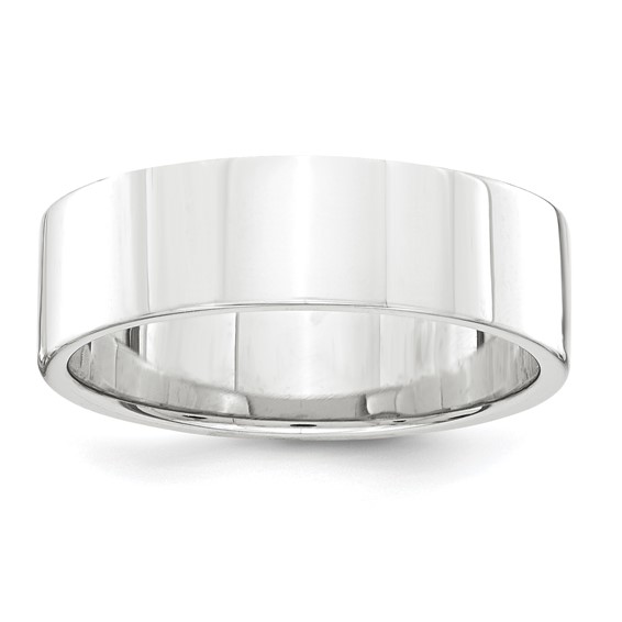 Polished platinum 950 wedding band. Width: 6mm, thickness: 1.2mm. Available in 6-12, whole finger sizes only. Hallmark PLAT on the interior. Standard fit. Flat edges with flat center. Size 7 band weighs approximately 10.14 grams. Made in the USA.