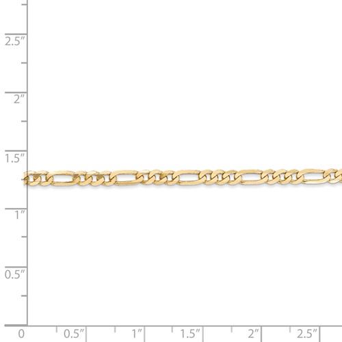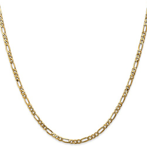 Polished solid 14kt yellow gold 18in flat figaro chain has a lobster clasp. Width: 3mm. Weight: 5.8 grams. Import.