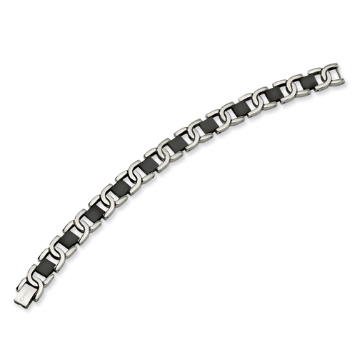 This men's stainless steel bracelet has U shaped links. Length: 8in. Link width: 10mm. Fold-over clasp. This item is composed of grade 316 stainless steel. Stainless steel will not oxidize [rust] nor turn black. Imported.