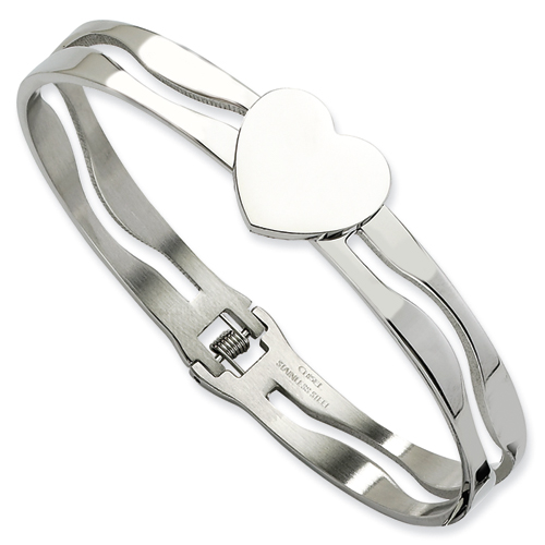 This ladies' polished stainless steel heart bracelet has a wavy cut out design. Length: 7in. This item is composed of grade 316 stainless steel. Stainless steel will not oxidize [rust] nor turn black. Imported. Engravable.