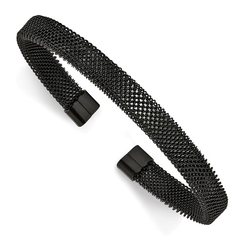 Stainless steel black plated mesh cuff bracelet is made of women. Length: 7in, width: 8mm. This item is composed of grade 316 stainless steel, known for its superior corrosion resistance. 316 steel is commonly used in stainless steel jewelry. Insist on 316 stainless steel. 316 steel is also known as marine grade stainless steel, for its high resistance to chloride corrosion. Stainless steel will not oxidize [rust] nor turn black. Imported.