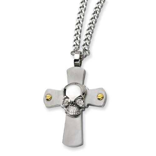 Stainless steel skull cross dimensions: 2in x 1 1/2in. Stainless steel curb necklace length: 24in. Stainless steel will not oxidize [rust] nor turn black. Imported.