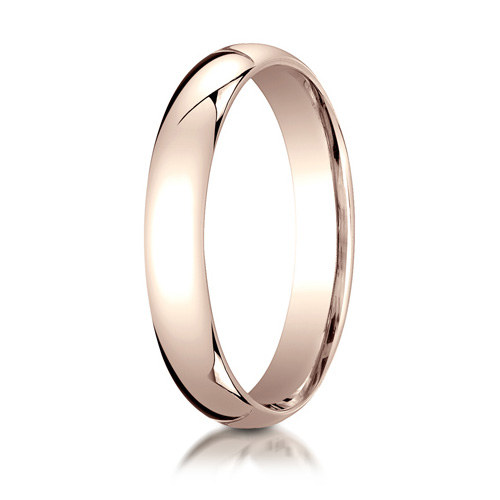 14kt rose gold wedding band has a slightly domed center and polished finish. Die struck and comfort fit. Width: 4mm, thickness: 1.8mm. Made in USA. Available in finger sizes 4-15, whole and half sizes only.Lifetime GuaranteeIf your ring is ever damaged during normal wear, the manufacturer will repair or replace your wedding ring free of charge. If your finger size ever changes, the manufacturer will resize or replace your ring free of charge. In the case that the manufacturer has to add material to your ring, you will only be charged for the difference in the additional metal or stones needed to restore the piece. Guarantee ParametersThe guarantee does not cover rings that have been ordered in the wrong finger size or finger sizes that may have changed between the time of purchase and the actual physical receipt of the piece. Third party alterations, other than engraving, will void the warranty.The manufacturer reserves the right to deny the Lifetime Guarantee for any ring that shows signs of abuse or tampering.