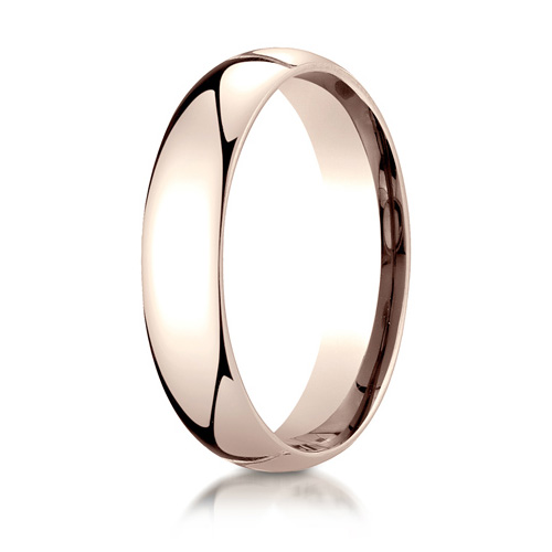 14kt rose gold wedding band has a slightly domed center and polished finish. Die struck and comfort fit. Width: 5mm, thickness: 1.8mm. Made in USA. Available in finger sizes 4-15, whole and half sizes only.Lifetime GuaranteeIf your ring is ever damaged during normal wear, the manufacturer will repair or replace your wedding ring free of charge. If your finger size ever changes, the manufacturer will resize or replace your ring free of charge. In the case that the manufacturer has to add material to your ring, you will only be charged for the difference in the additional metal or stones needed to restore the piece. Guarantee ParametersThe guarantee does not cover rings that have been ordered in the wrong finger size or finger sizes that may have changed between the time of purchase and the actual physical receipt of the piece. Third party alterations, other than engraving, will void the warranty.The manufacturer reserves the right to deny the Lifetime Guarantee for any ring that shows signs of abuse or tampering.