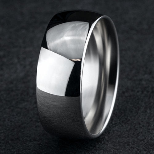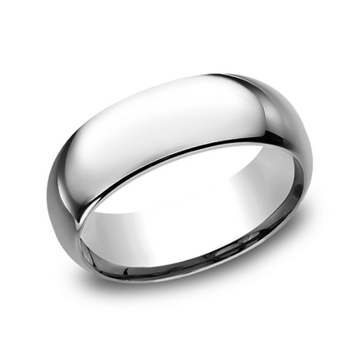 This 8mm platinum wedding band is die struck and comfort fit. Domed center, polished finish. Ring thickness: 1.8mm. Solid platinum 950 [95% Platinum, 5% Ruthenium alloy]. Made in the USA.
