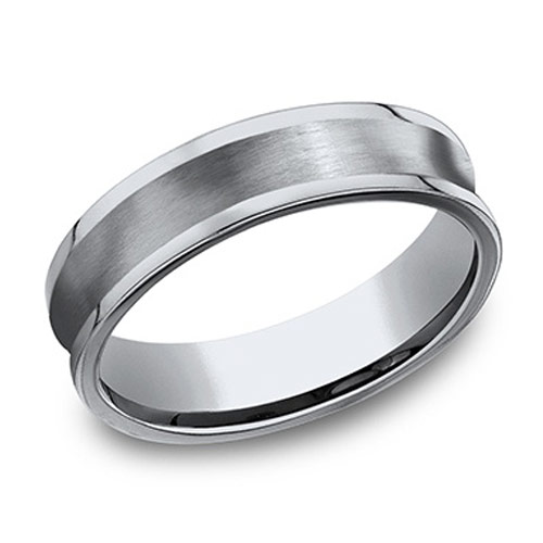 Comfort fit titanium wedding band has a concave, spin satin center and polished edges. Width: 6mm only. Solid aircraft grade titanium. Made in the USA.Manufacturer's Lifetime GuaranteeIf your ring is ever damaged during normal wear, the manufacturer will repair or replace your wedding ring free of charge. If your finger size ever changes, the manufacturer will resize or replace your ring free of charge. In the case that the manufacturer has to add material to your ring, you will only be charged for the difference in the additional metal or stones needed to restore the piece. Guarantee ParametersThe guarantee does not cover rings that have been ordered in the wrong finger size or finger sizes that may have changed between the time of purchase and the actual physical receipt of the piece. Third party alterations, other than engraving, will void the warranty.Manufacturer reserves the right to deny the Lifetime Guarantee for any ring that shows signs of abuse or tampering.