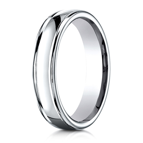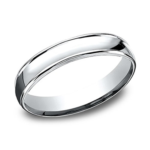 Platinum 4mm wedding band has rounded edges. Die struck and comfort fit. Polished finish. Solid platinum 950 [95% Platinum, 5% Ruthenium alloy]. Made in the USA.