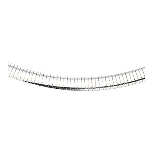 This solid 18 inch domed omega chain has a lobster clasp. Width: 7.25mm. Polished finish. Approximate weight: 41.60 grams. Ships from USA. Available while supplies last.