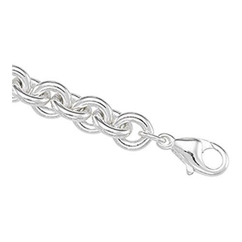 Solid sterling silver. Polished cable round chain has a lobster clasp. Weight: 75.30 grams. Width: 9mm, length: 17in.