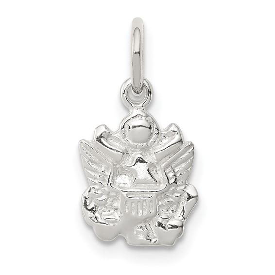 US Army eagle charm is made of sterling silver. Item size: 3/8 inch tall and 3/8 inch wide. This item is half the size of a penny and weighs approximately 0.5 grams. Chain sold separately. Army trademarks and insignias are reproduced with permission from the Department of the Army. Permission has been granted for use of the Marine Corps, Air Force, Coast Guard and Navy insignias on jewelry; however, usage does not indicate endorsement by the Department of Defense or any of its components.