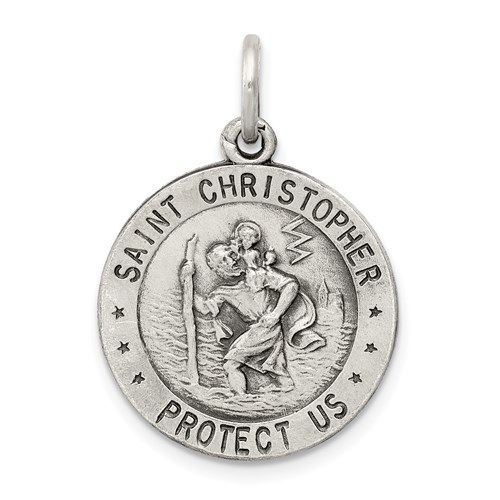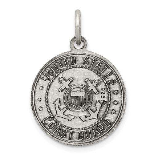 This round, reversible US Coast Guard and St Christopher medal is made of antiqued sterling silver. Item size: 3/4in x 3/4in, slightly larger than a penny. Bail accommodates up to a 3mm wide chain. This item weighs approximately 2.7 grams. Chain sold separately. Army trademarks and insignias are reproduced with permission from the Department of the Army. Permission has been granted for use of the Marine Corps, Coast Guard, Coast Guard and Coast Guard insignias on jewelry; however, usage does not indicate endorsement by the Department of Defense or any of its components.