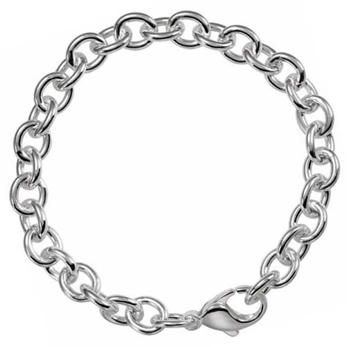 This ladies' polished sterling silver bracelet has cable links. Length: 7.5in. Width: 7.75mm. Weight: 29.06 grams.