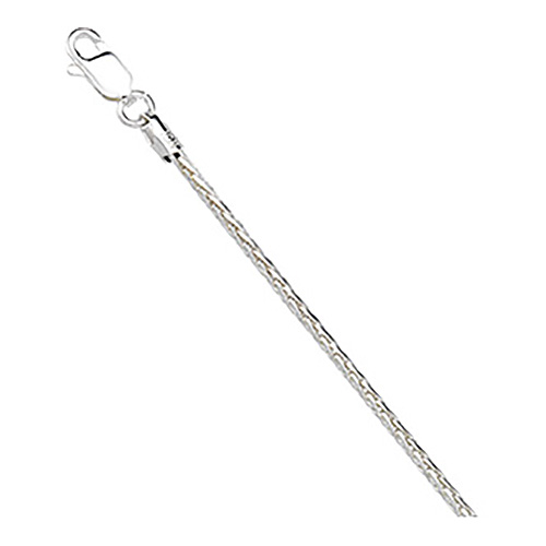 Polished sterling silver. Solid diamond cut wheat chain. Width: 1.75mm. Weight: 5.91 grams. Lobster clasp.