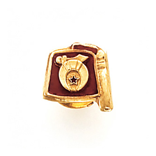 Shriners fez tie tac is made of polished 10k yellow gold and red enamel. This is 1/2 inch tall and 1/2 inch wide. Made in the USA.