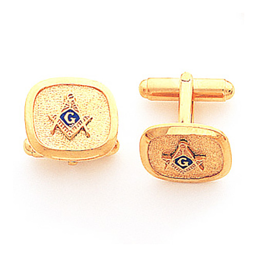 Oblong shape Masonic cufflinks are polished and yellow gold filled. Each cuff link measures 5/8 inch tall and 11/16 inch wide.