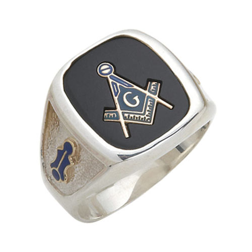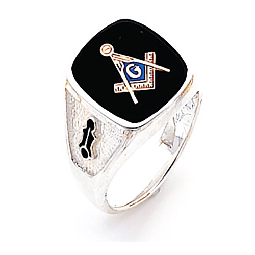 This large solid back, sterling silver masonic ring offers your choice of a large red, blue or black oblong onyx stone. Stone size: 16m x 14mm. Blue Lodge logo, full color. Standard fit. Made in the USA.