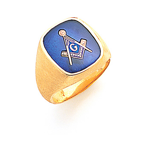 Solid back only, polished 14kt yellow gold ring with Masonic compass and set square symbol. Stone size: 16mm x 14mm. Choose red, blue or onyx oblong stone. Tapered blank sides. Also available in white gold by special order. Made in USA.
