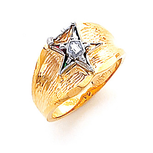 Polished 10k yellow gold. Wide top. Finely detailed ring features enamel Order of the Eastern Star logo.