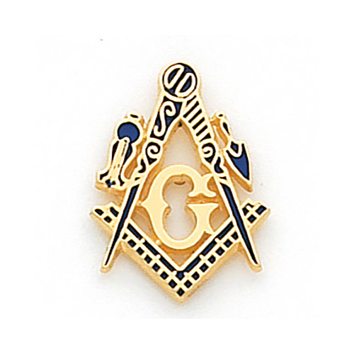Masonic tie tac is made of polished solid 10k yellow gold. This item measures 7/8 inch tall and 5/8 inch wide. Blue enamel. Approximate weight: 1.6 grams. Made in USA.