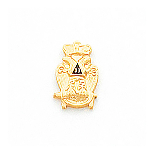 33rd degree Scottish Rite tie tac is made of polished 10k yellow gold. This item measures 1/2 inch tall and 5/16 inch wide. Black enamel. The double-headed eagle symbol is for the Ancient and Accepted Scottish Rite of Freemasonry. The number 32 represents the 32nd degree of the Scottish Rite.