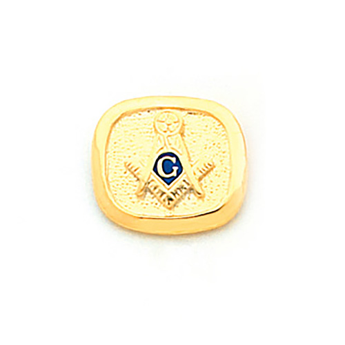 Gold-plated oblong tie tac features the masonic G, square and compasses logo. Dimensions: 5/8 inch tall x 11/16 inch wide. Made in the USA.