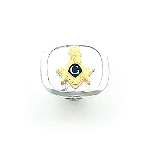 Polished, sterling silver. Finely detailed tie tac features Masonic compass and set square logo. Dimensions: 5/8 inch tall x 11/16 inch wide.