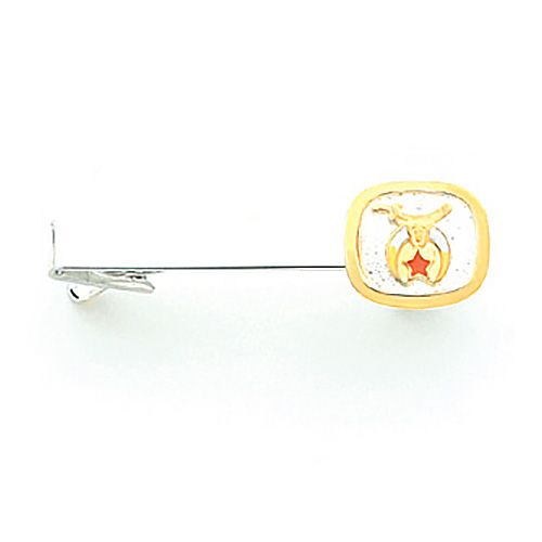 Two tone Shriners tie bar is made of polished, solid sterling silver. Finely detailed item features Shriners sword, crescent and red star logo. Tie bar dimensions: 5/8 inch tall and 2 inches wide.