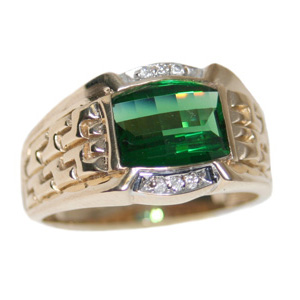 Comments about Joy Jewelers 10kt Yellow Gold Barrel Synthetic Emerald Ring with Diamonds: