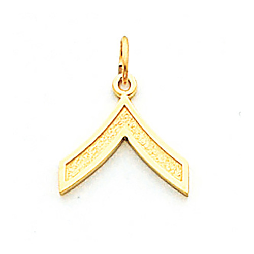US Marine Corps private first class insignia pendant is made of 14k yellow gold. Dimensions: 1/2 inch tall and 5/8 inch wide. Chain not included.
