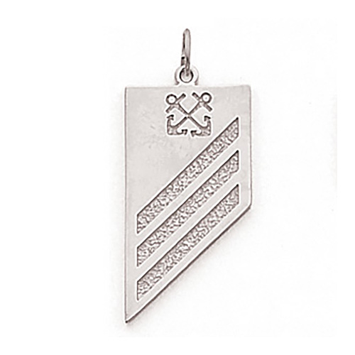 US Navy Seamen insignia pendant is made of polished sterling silver.. Dimensions: 1 1/8 inch tall and 5/8 inch wide. Chain not included.