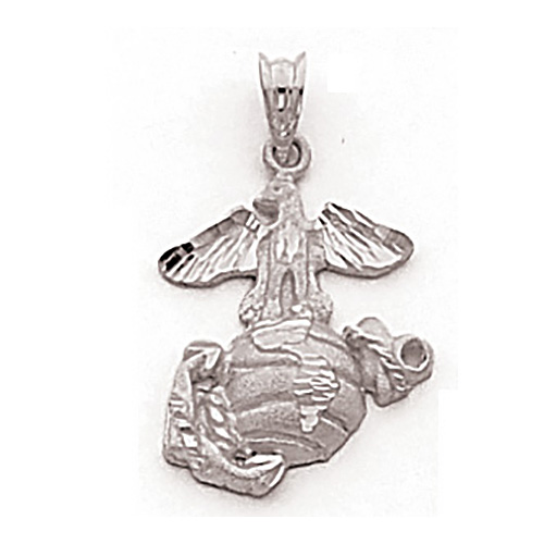 Finely detailed sterling silver US Marine Corps pendant features the eagle, globe and anchor. Dimensions: 3/4 inch tall and 3/4 inch wide. Chain not included. Fits up to a 3mm wide chain. Made in USA. Officially licensed product of the USMC.