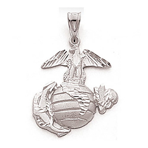 Finely detailed sterling silver US Marine Corps pendant features eagle, globe and anchor. Hollow with open back. Dimensions: 1 inch tall and 1 inch wide. Chain not included. Officially licensed product of the USMC. Made in USA.