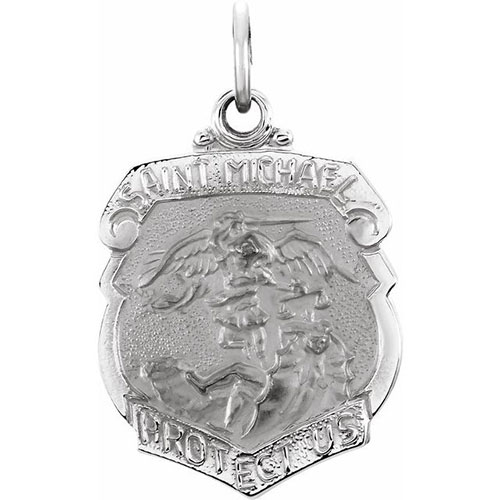 This petite St Michael medal is made of solid sterling silver. Item dimensions: 16.5mm x 14mm, slightly smaller than a dime. Fits up to a 2.5mm wide chain. approximate Weight 1.5 grams. Made in USA. One of the archangels, St. Michael is the popular patron saint of policemen and radiologists.