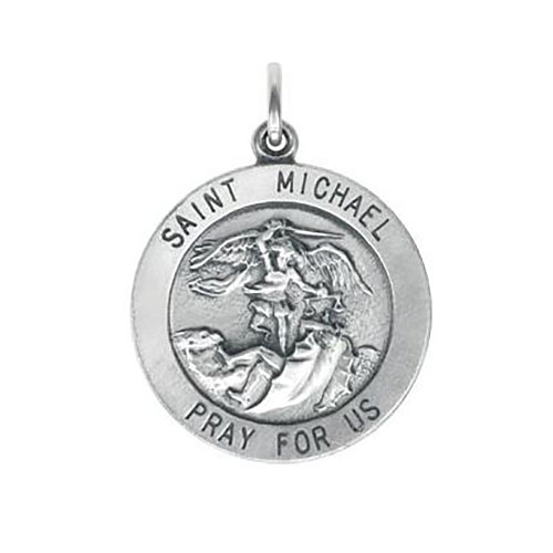Polished sterling silver. Item dimensions: 22mm in diameter, the size of a nickel. Chain not included. Weighs 3.92 grams. Please note: weight is approximate, actual weight may vary. One of the archangels, St. Michael is the popular patron saint of policemen and radiologists.